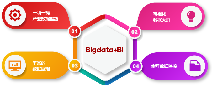 基于Bigdata+BI的一物一碼產(chǎn)業(yè)數(shù)據(jù)樞紐,豐富的數(shù)據(jù)展現(xiàn),可視化數(shù)據(jù)大屏,確保企業(yè)及時(shí)掌握產(chǎn)品流動(dòng)方向全程數(shù)據(jù)監(jiān)控。