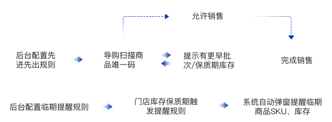 門店/經(jīng)銷商掃碼錄入批次、保質(zhì)期信息,實(shí)現(xiàn)商品收、退、出、盤(pán)、調(diào)、移的高效管理